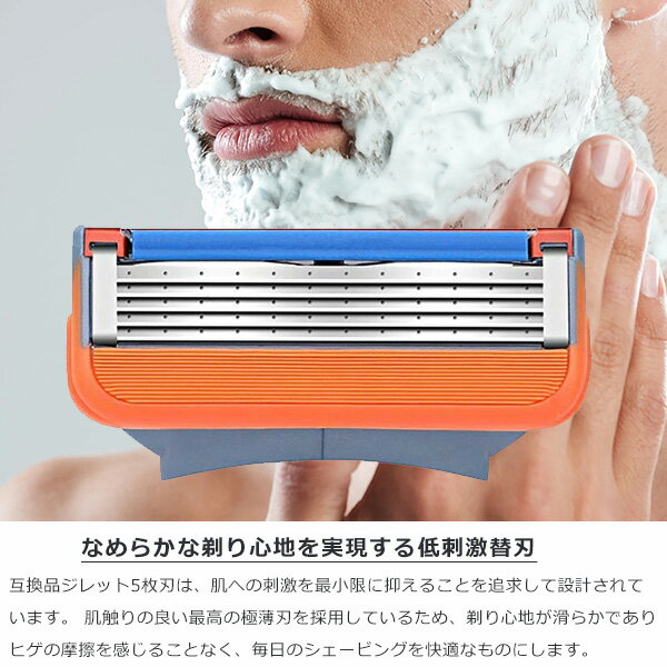 【なめらかな剃り心地を実現する低刺激替刃】 この互換品ジレット5枚刃は、肌への刺激を最小限に抑えることを追求して設計されています。