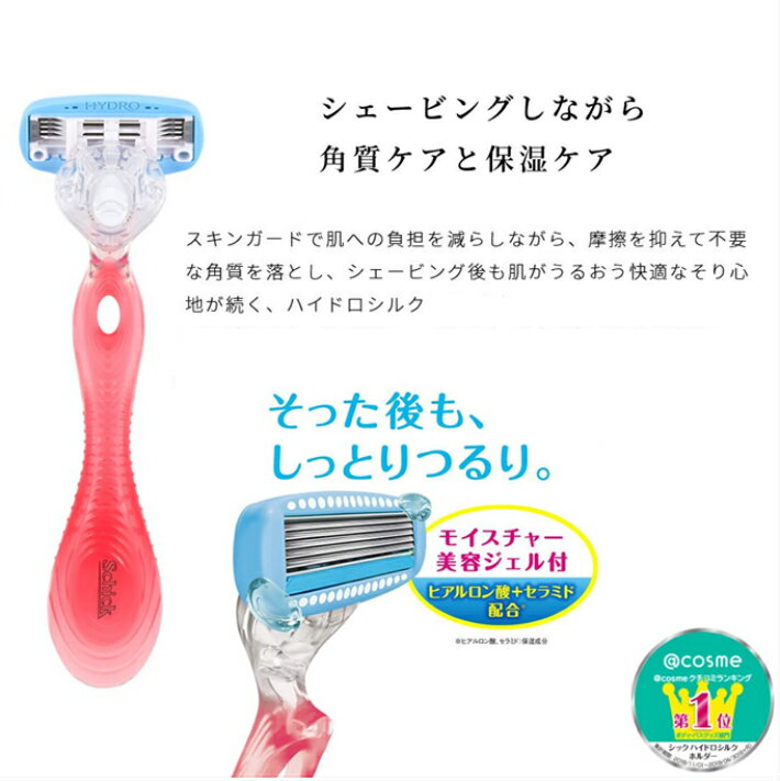 商品説明メーカー名シック Shick レディースカミソリ・女性用ハイドロシルク5枚刃ホルダー+替刃7個付きシックプレミア顔そり用1本付きセット セット内容・シック ハイドロシルク ホルダー ・シック ハイドロシルク 替刃7個(うち1個は本体に装着済) ・シック プレミア 敏感肌用 顔そり用 1本商品内容【シェービングでうるおい美肌ケア 】シェービング後も肌がうるおう 摩擦に敏感な肌をしっかり守る 肌に密着してきれいにそれるVIOを好みの長さに4段階調整 肌に優しいボディシェービングをしたい方に、お薦めです。