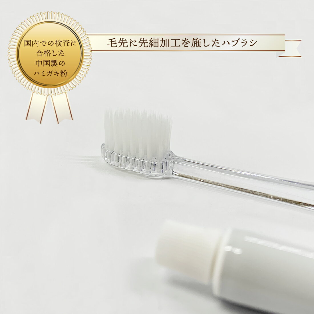毛先に先細加工を施したハブラシと国内での検査に合格した中国製のハミガキ粉になります。