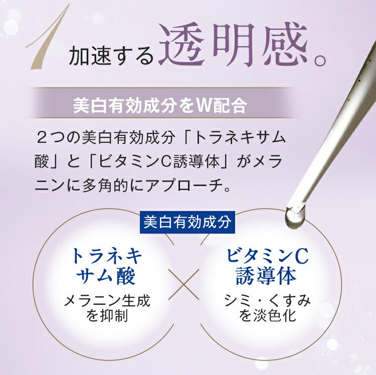 【内容量】15g 異なる働きをする有効成分、「トラネキサム酸」「ビタミンC誘導体」がシミ・くすみの原因であるメラニンに多角的にアプローチ。