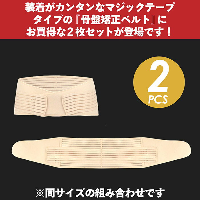 【商品名】骨盤矯正ベルト マジックテープタイプ 2枚セット 【商品説明】 ■骨盤ベルトのお悩みあるある  骨盤ベルトは着けたいけど…  がっちりベルトは苦手…  装着に時間がかかる…  通常のサポーターでは痛くて続けられない…  そんなあなたにオススメな骨盤矯正ベルト ■自分で圧を調節できる ■柔らかいソフトベルト ■装着簡単マジックテープ ■キツすぎないからこんな方におすすめ! ・産後体形が変わってきた ・猫背が気になる ・ぽっこりお腹が気になる ・一日座りっぱなしのデスクワークの方にも! ■ポイント1  自分で圧を調整できる  その日の体調やご自身の体型に合わせて簡単に  圧を調整できます。