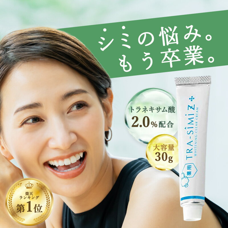 【keyword】 薬用 トラシーミ Z とらしーみ シミ シミ取りクリーム シミ取り クリーム しみ そばかす 取り 薬 シミ消し シミ そばかす 化粧品 シミ抜き シミ隠し 口コミ ホワイトニング メンズ しみとり shimitori 消す 染み抜き シミ消し 顔 グリム glim トラネキサム酸 高濃度 ボタンエキス アロエエキス コメヌカ油 エイジングケア ソバカス そばかす ハリ 弾力 透明感 肝斑 メラニン 無香料 パラベンフリー 無着色 高濃度美容クリーム スキンケア ボディケア 保湿成分 ヒザ 脇の黒ずみ 女性 女 レディース パッチ 最強 シミ除去 肝斑 薬 美白 美容液 くすみ 対策 薬用美白 シミケア シミ集中ケア しみ 対策 メール便 クリーム ポイント消化 父の日 父の日ギフト プレゼント 実用的 便利グッズ圧倒的な透明美肌に シミがないワンランク上の肌へ 人気の秘密は2つの美白有効成分がしみ・そばかすを防いで 3つの植物成分がハリ・弾力のある肌へ導く! 美白有効成分「トラネキサム酸」がシミの原因メラニンを創り出す「メラノサイト」刺激物質を沈静化させ、メラニンの生成を抑え込みシミ・ソバカスを防ぎます。