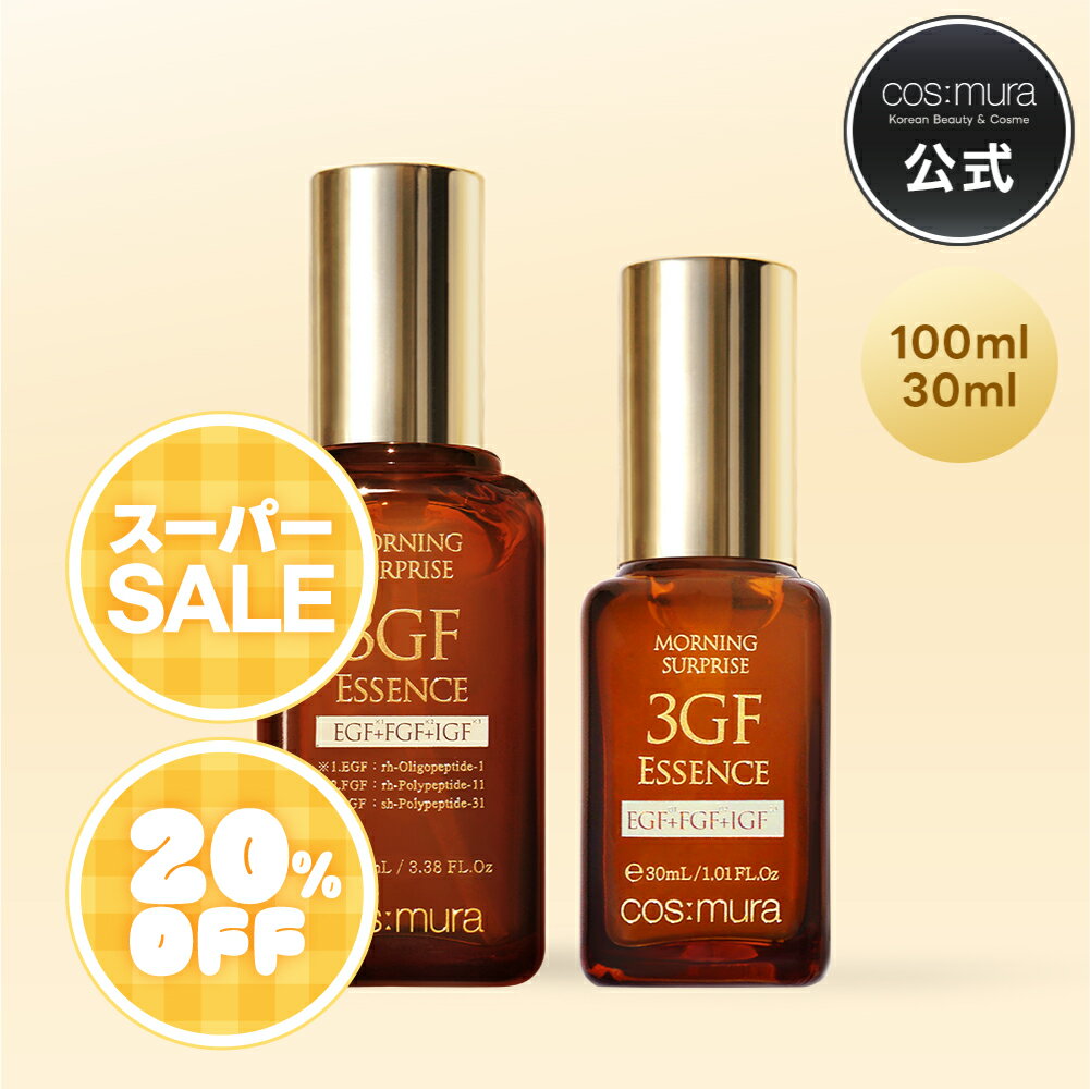 商品情報 広告文責 株式会社L&K 製造販売 株式会社L&K メーカー名 cos:mura(コスムラ) 製造国 韓国 商品区分 化粧品 カテゴリ スキンケア・基礎化粧品 > 美容液 商品名 cos:mura 3GFエッセンス 内容量 100ml、30ml 商品説明 cos:muraのロングセラー美容液「3GFエッセンス」 年齢を感じさせない肌づくりをサポート ○3種の成長因子(EGF・FGF・IGF)を中心に贅沢な保湿成分配合 ○とろみのあるテクスチャーで肌になじみやすく、ベタつかずしっとり ○乾燥によるくすみやハリ不足にアプローチ ○今回のリニューアルで保湿感・浸透感がパワーアップ ■このようなお悩みをお持ちの方へ ・肌の乾燥が気になる方 ・ハリ感やキメの乱れが気になる方 ・エイジングケアを始めたい方 キーワード コスムラ、3GFエッセンス、美容液、EGF、FGF、IGF、エイジングケア、保湿、ハリ、弾力、ターンオーバー、韓国コスメ 成分 水、グリセリン、プロパンジオール、変性アルコール、ナイアシンアミド、1,2-ヘキサンジオール、ヒト遺伝子組換オリゴペプチド-1、ヒト遺伝子組換ポリペプチド-11、合成ヒト遺伝子組換ポリペプチド-31、BG、ビスPEG-18メチルエーテルジメチルシラン、ヒドロキシアセトフェノン、(アクリレーツ/アクリル酸アルキル(C10-30))クロスポリマー、(PCA/インステアリン酸)グリセレス-25、トロメタミン、ビオサッカリドガム-1、エチルヘキシルグリセリン、アデノシン、EDTA-2Na、香料、(アクリル酸ヒドロキシエチル/アクリロイルジメチルタウリンNa)コポリマー、ヒドロキシエチルセルロース、エチルヘキサン酸セチル、パルミチン酸エチルヘキシル、ヒアルロン酸、加水分解ヒアルロン酸、ヒアルロン酸Na、スクワラン、ジステアリン酸スクロース、トリ(カプリル酸/カプリン酸)グリセリル、ポリソルベート60、イソステアリン酸ソルビタン、乳酸桿菌発酵液、水添レシチン、BHT、ビフィズス菌培養液、オタネニンジン根エキス、ビフィズス菌培養液溶解質、レウコノストック/ダイコン根発酵液、乳酸球菌発酵液、乳酸桿菌/ザクロ果実発酵エキス、乳酸桿菌/ダイズ発酵エキス、乳酸桿菌培養溶解質、乳酸球菌培養溶解質、アセロラチェリー発酵液、アラントイン、マルトデキストリン。