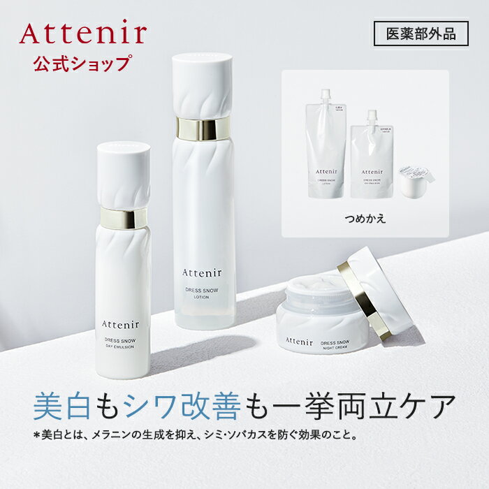 --------内容量●ドレススノー ローション 【医薬部外品】 [販売名:アテニア ローション DSn]本体150mL つめかえ140mL 約2〜3ヵ月分 目安量:ディスペンサー2〜3回プッシュ分 ●ドレススノー デイエマルジョン 【医薬部外品】 [販売名:アテニア デイエマルジョン DSn]本体60mL つめかえ50mL 約3〜5ヵ月分(朝のみ使用) 目安量:ディスペンサー2〜3回プッシュ分●ドレススノー ナイトクリーム 【医薬部外品】 [販売名:アテニア ナイトクリーム DSn]本体/つめかえ35g 約2〜3ヵ月分(夜のみ使用) 目安量:パール粒大 全成分 全成分は各商品ページよりご確認ください。