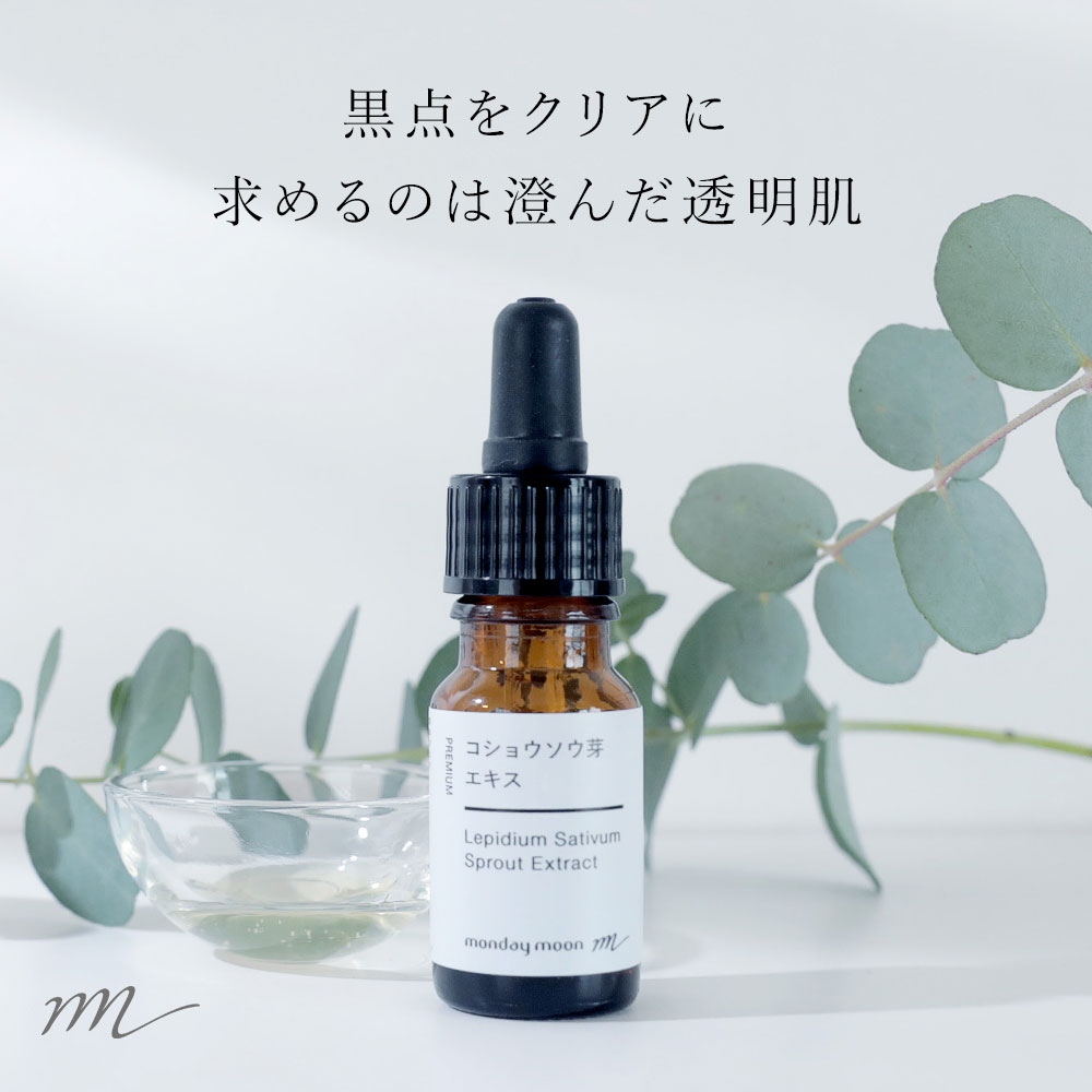 区分雑貨(化粧品原料)製造販売/広告文責mono株式会社(088-677-8724)PREMIUM SERIESコショウソウ芽エキス 黒点をクリアに 求めるのは澄んだ透明肌 CONCEPT 内側から湧き上がる 肌本来の明るさ 黒点対策にはメラニン生成の抑制はもちろん、「老化色素」と呼ばれる“リポフスチン”を抑えることも重要なポイント。